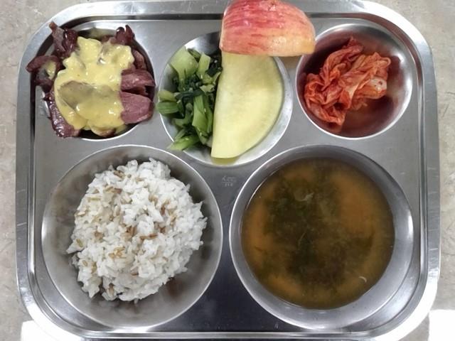 건새우아욱국->열무된장국, 시금치나물->청경채나물, 파인애플->사과 로 변경되었습니다.